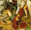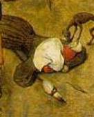 In Bruegel la donna è caduta, forse morta, mentre uno